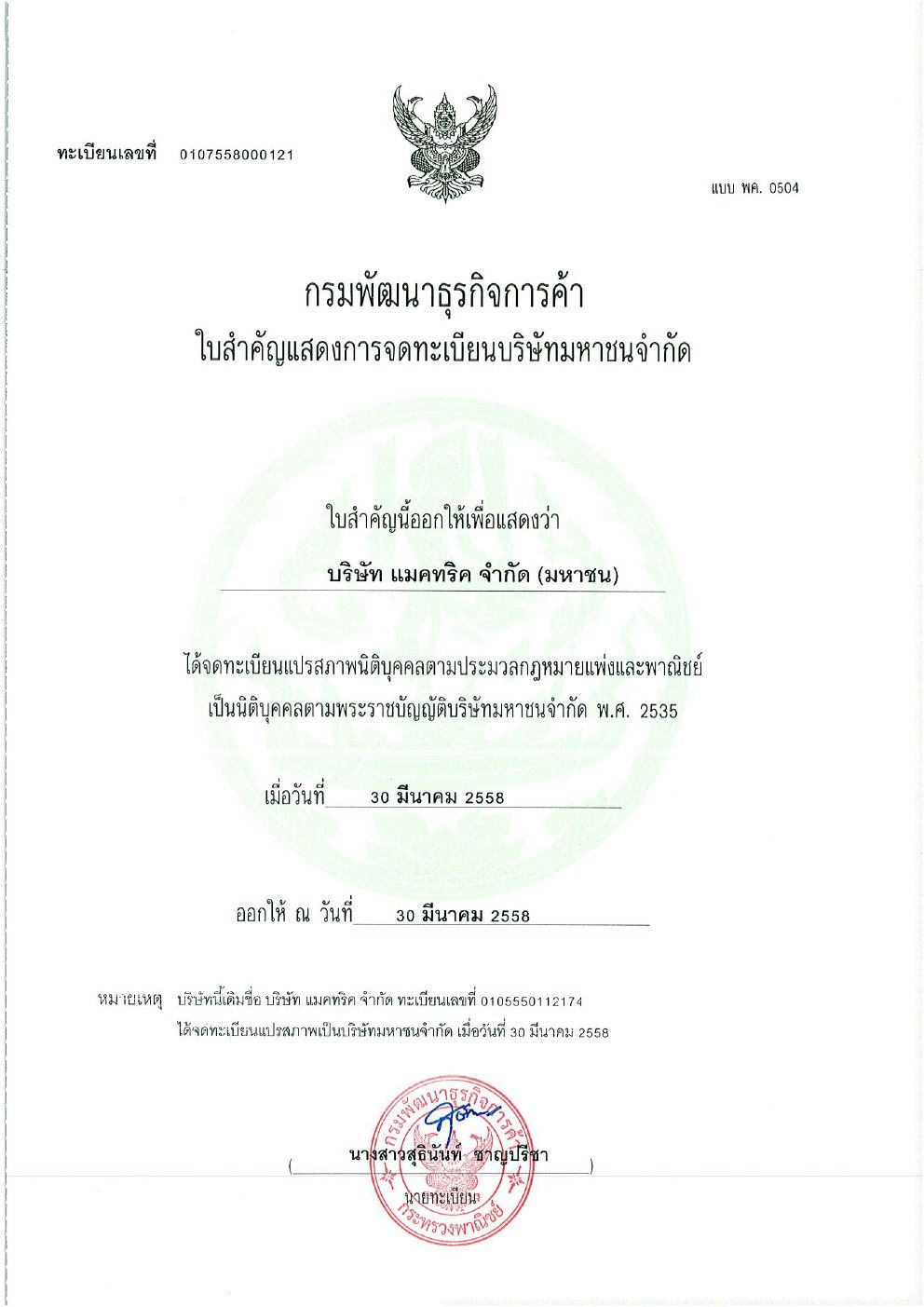 ใบสำคัญการจดทะเบียน